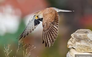 Pustułki na Zamku Chojnik. Samiec przyniósł zdobycz do gniazda