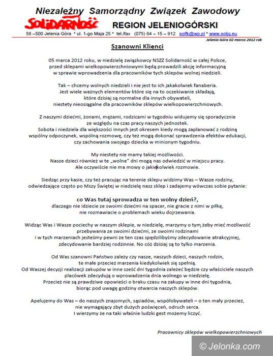Akcja „Solidarności” na rzecz niedzieli wolnej od pracy