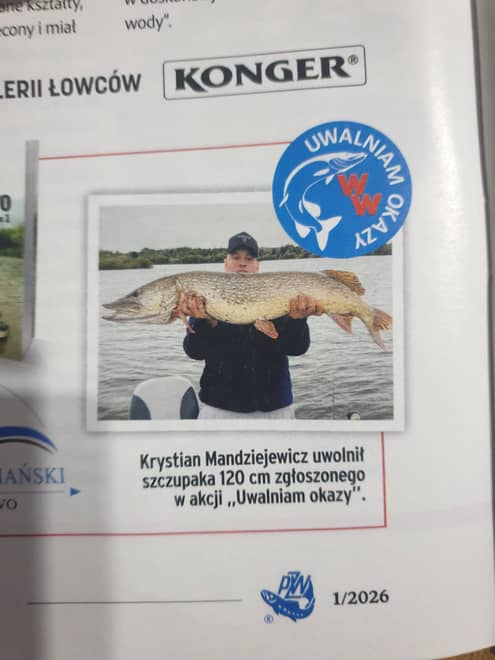 - Jego okazały połów (szczupak - 120 cm) pozyskany na terenie gminy Lwówek Ślaski zakończony oczywiście oficjalnym wypuszczeniem ryby został zauważony przez komisję z Wiadomości Wędkarskich. W ramach realizowanej powyższej akcji, co miesiąc nagradzany jest jeden z wytypowanych wędkarzy, który w kategorii długościowej ryb wypuszczanych z powrotem do łowiska przedstawi, uwieczni i udowodni owe wypuszczenie - tłumaczy Przemysław Popławski z Koła Polskiego Związku Wędkarskiego Lwówek Śląski.