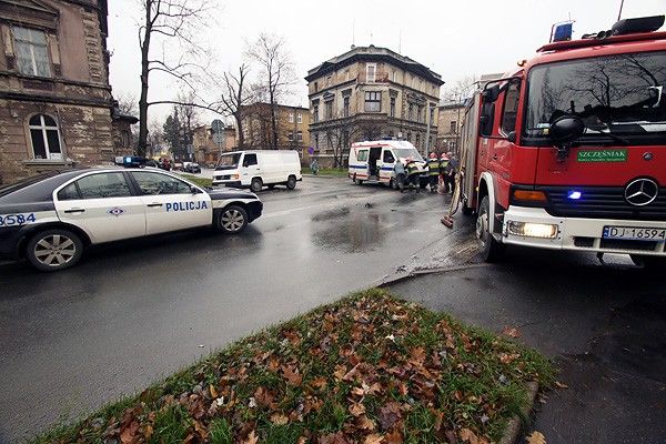 Ambulans w opałach na ruchliwym skrzyżowaniu