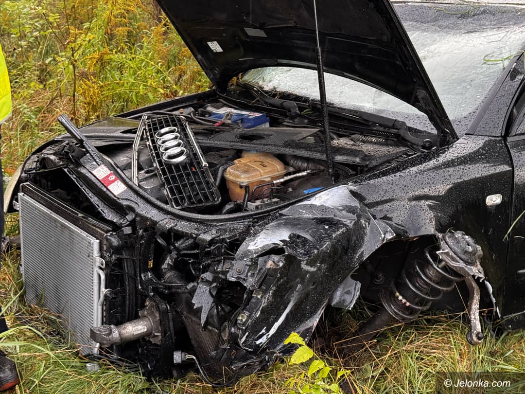 Audi wypadło z drogi na ul. Wincentego Pola