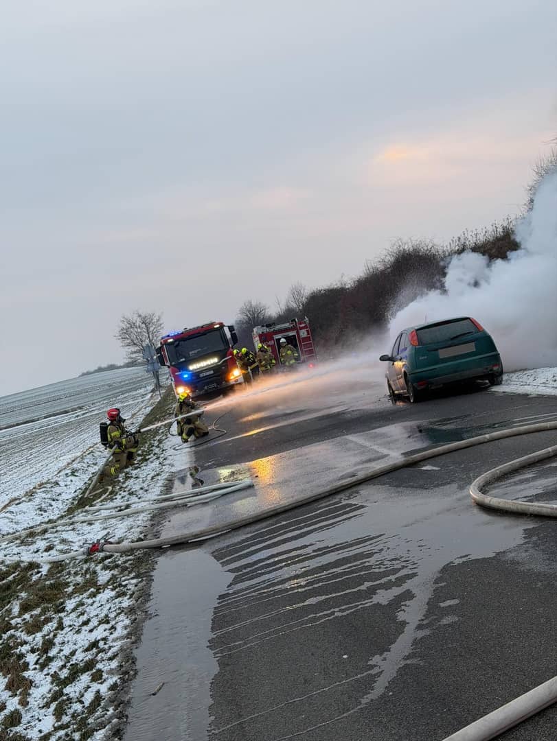 Auto w ogniu. Szybka akcja strażaków
