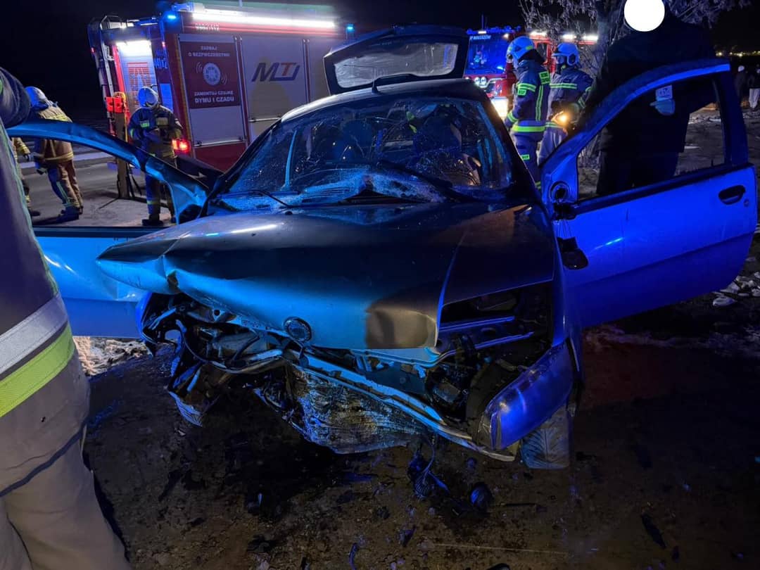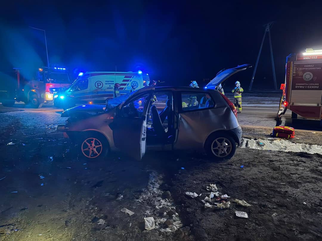 Auto w rowie, rannego uwalniali strażacy