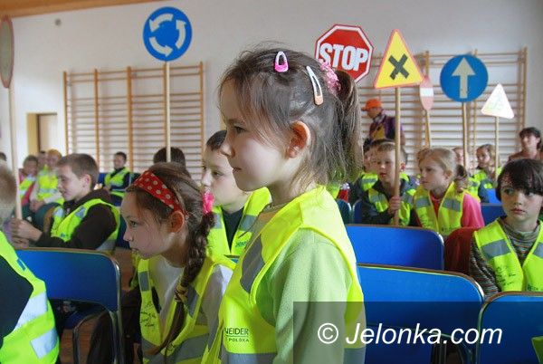 Dzieci które dostały kamizelki wzięły udział w szkoleniu prowadzonym przez policjantów ruchu drogowego i prewencji z komendy miejskiej w Jeleniej Górze. Policja co roku wspiera akcję „Bądź widoczny”. Danuta Razmysłowicz tłumaczyła jak należy radzić sobie w przypadku zagrożeń, na przykład ataku psa. Okazało się, że wiele dzieci miało już doświadczenie z atakującym je psem. Z kolei funkcjonariusz sekcji ruchu drogowego wyjaśniał zasady bezpiecznego poruszania się po drogach, jakimi zwykle dzieci chodzą do szkoły. Dzieci poznawały najważniejsze znaki drogowe i gdzie mogą przechodzić przez jezdnię.