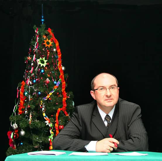 Prezydent Marek Obrębalski w świąteczno-noworocznej scenerii.
