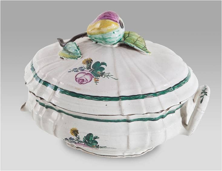Waza z pokrywą, Prószków, 1763 –1769, fajans, szkliwo ołowiowo – cynowe, malowanie.