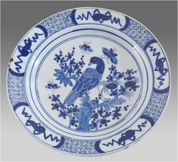 Talerz, Holandia, Delft, pocz. XVIII w., fajans, szkliwo ołowiowo – cynowe, malowanie kobaltem.