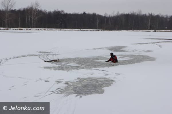 Chmara jeleni wpadła do stawu w Podgórzynie, zwierzęta ratowali strażacy