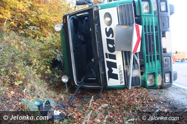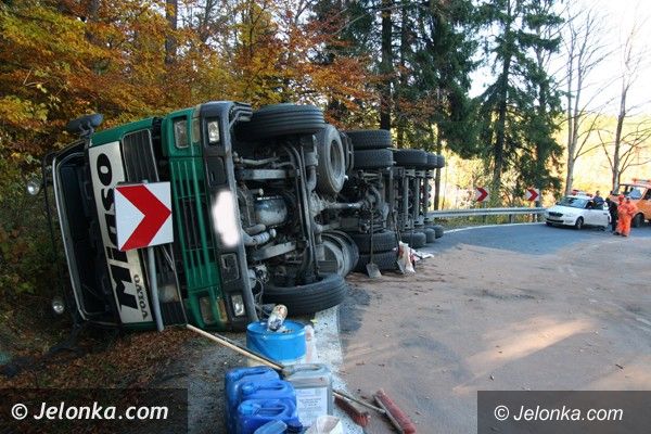 Ciężarówka z węglem wywróciła się na „trójce”. Droga do Jakuszyc zablokowana