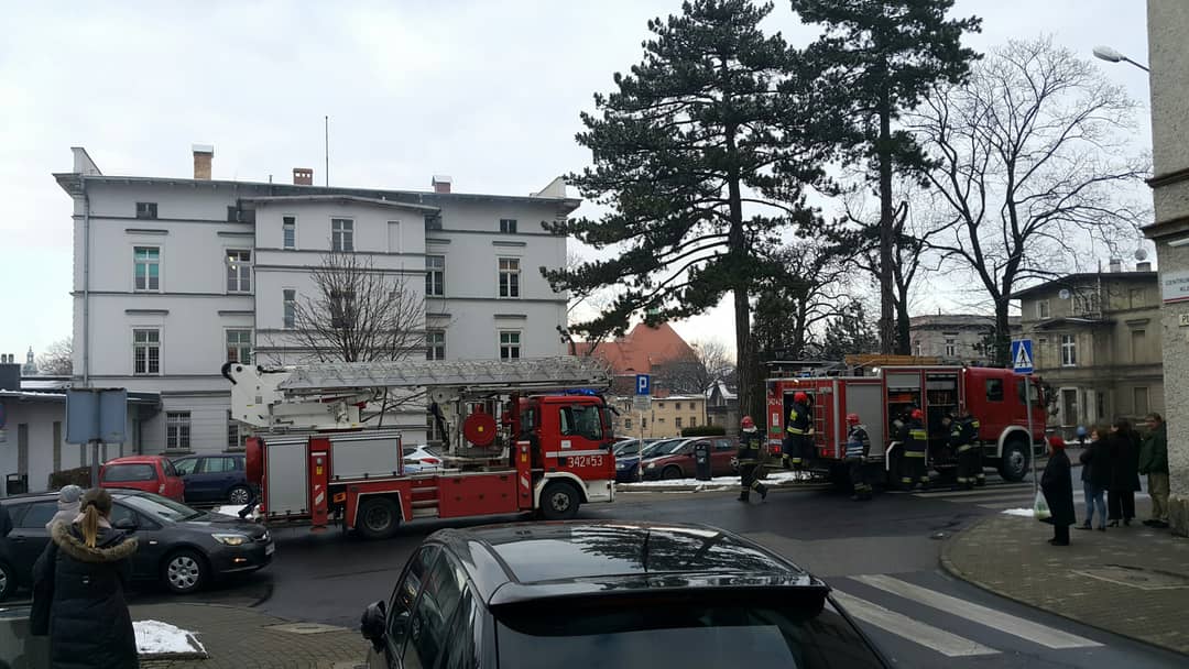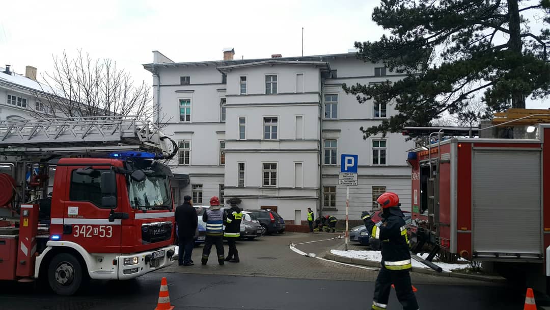 Ćwiczenia strażackie w magistracie przy Sudeckiej