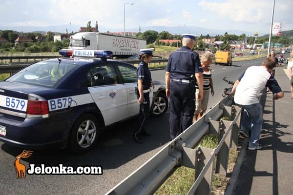 Cyklista pod kołami peugeota