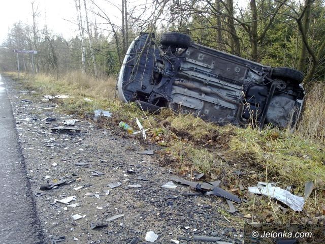 Czołówka i dachowanie na drodze do Karpacza