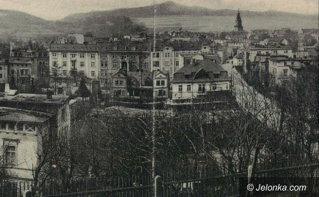 Panorama miasta z Cavalierbergu. Widać zabudowę Wilhelmstrasse (Wojska Polskiego) oraz część rezydencji z ogrodami przy Seydlerstrasse (Chełmońskiego), na których w 1914 roku powstanie dzisiejsze Muzeum Karkonoskie.