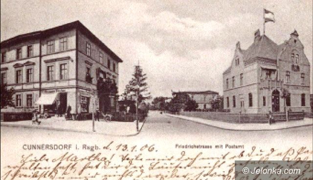 Cunnersdorfu ciąg dalszy. Urząd pocztowy, dziś znany jako tzw. mała poczta. Niemal naprzeciw skromna kamienica na rogu Warmbrunnerstrasse (Wolności) oraz T. Koernerstrasse (Powstańców Wielkopolskich).