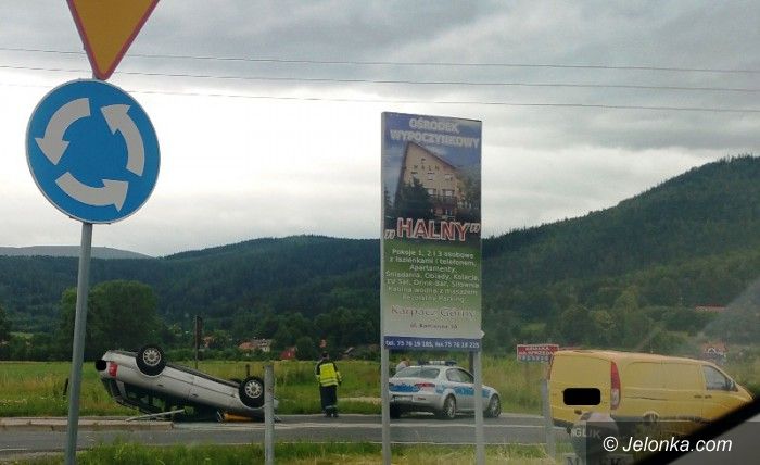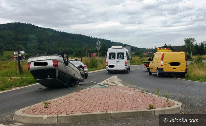 Dachowanie na rondzie w Miłkowie