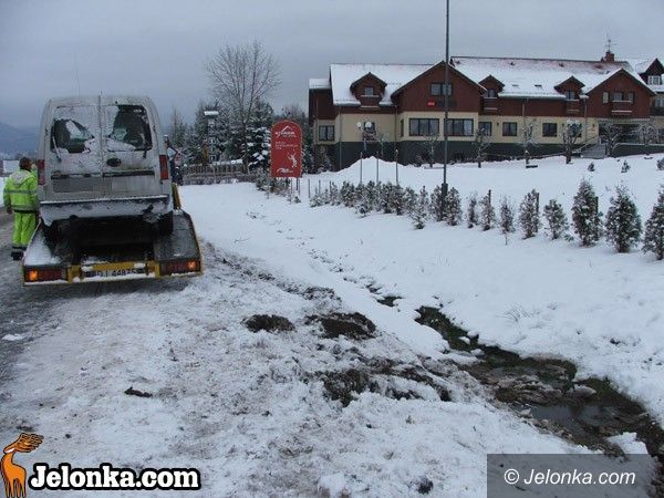 Dachowanie przy „Chacie za Wsią”. Przez różnicę poziomów jezdni