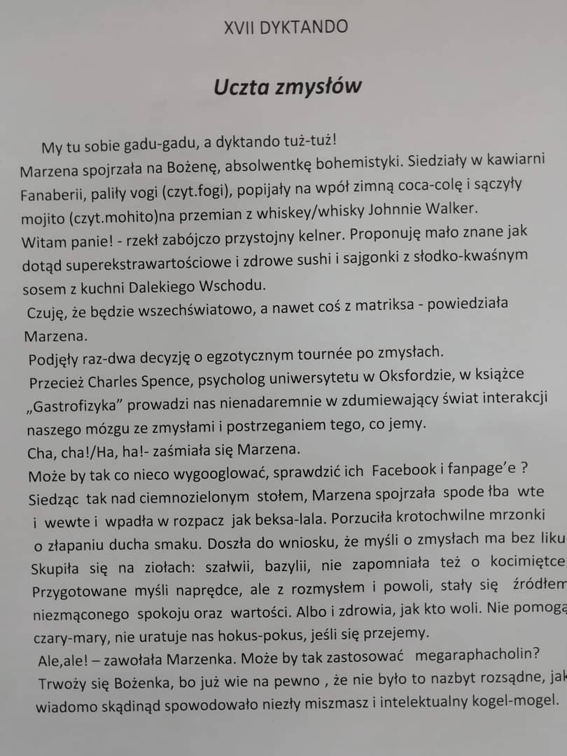 Dyktando z "ucztą zmysłów"