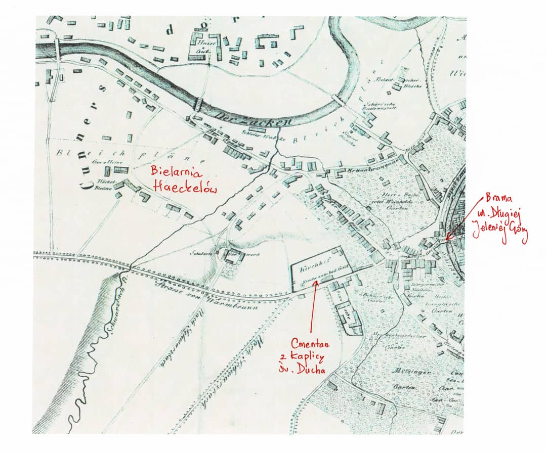 Lokalizacja bielarni Haeckelów na planie z XVIII w./fot. Archiwum S. Firszta
