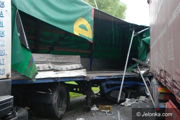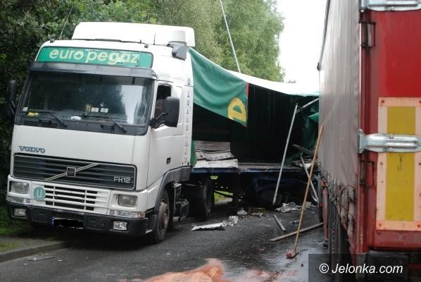 Groźnie na rondzie: zderzenie tirów