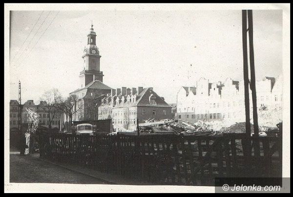 Ten sam ratusz podczas bandyckiej rozbiórki kamienic w rynku w latach 60-tych minionego wieku.