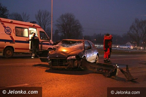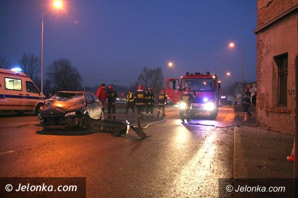 Hondą w mur na ulicy Wolności. Kierowca w szpitalu
