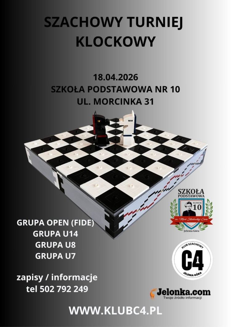 Zapraszamy wszystkich młodych szachistów do Szkoły Podstawowej nr 10 w Jeleniej Górze (ul. Morcinka 31) na wyjątkowy turniej, w którym łączymy królewską grę z miłością do klocków!