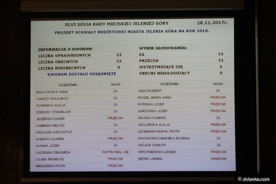 Jelenia Góra bez budżetu na rok 2018