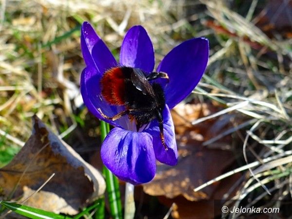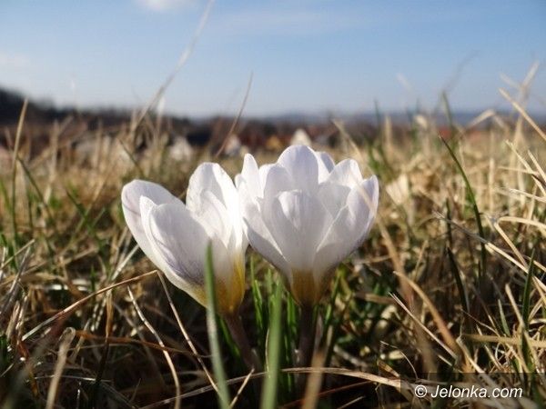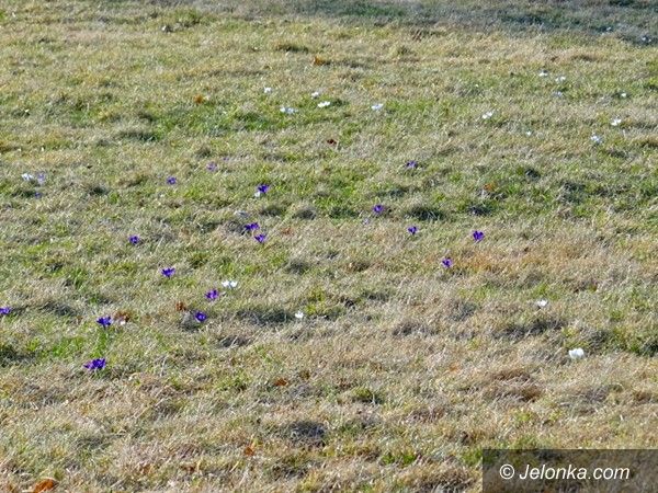 Karkonoskie krokusy zalśniły fioletem u podnóża Zamku Chojnik
