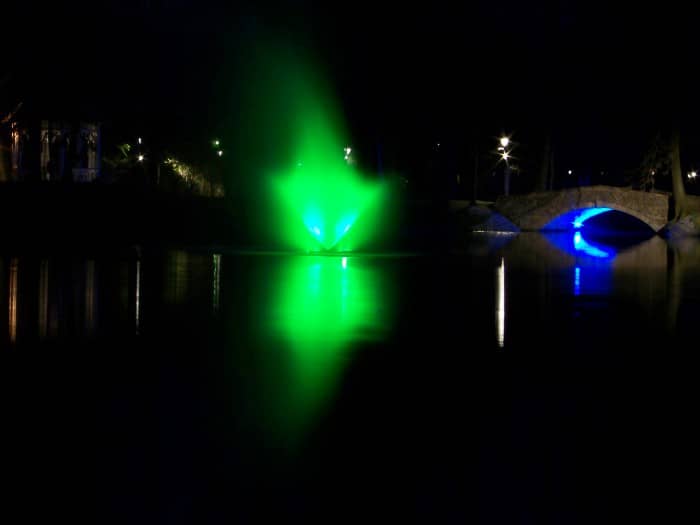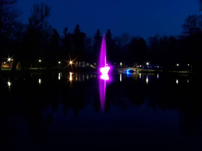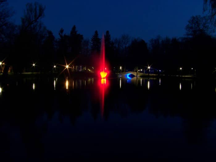 Kolorowa (po zmroku) fontanna w Parku Norweskim (aktualizacja)