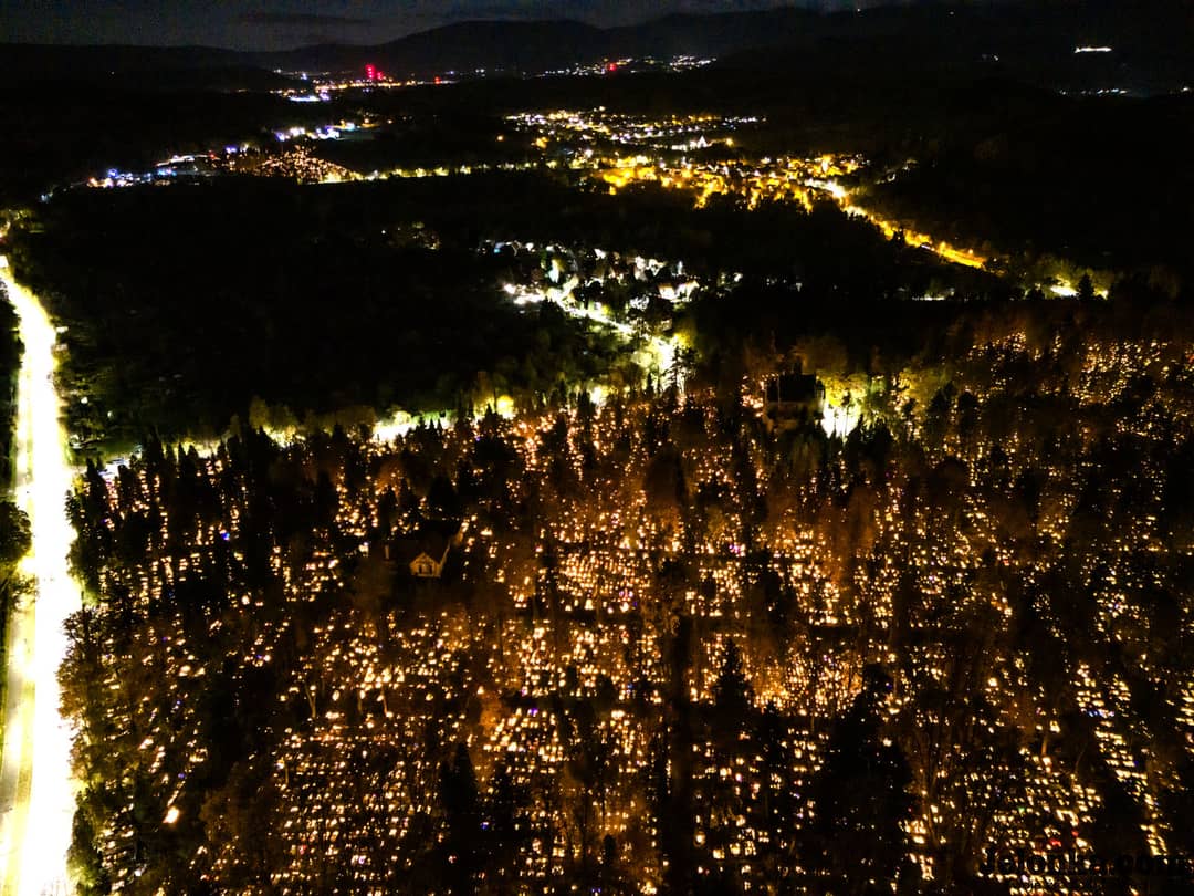 Magiczna łuna – cmentarz przy Sudeckiej z drona