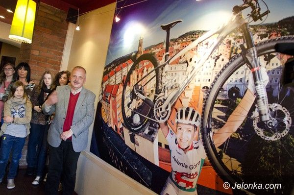 Maja Włoszczowska na tle swojego miasta. Po wernisażu w Czekoladziarni