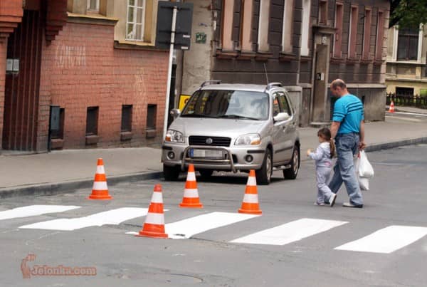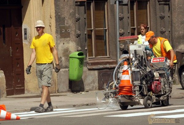 Malowanie pasów podlewane deszczem