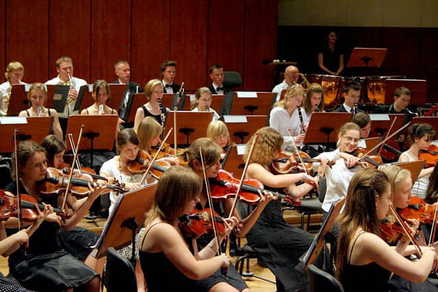 Młodzi symfonicy podczas okolicznościowego koncertu.