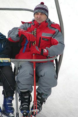 Premier na wyciągu narciarskim.