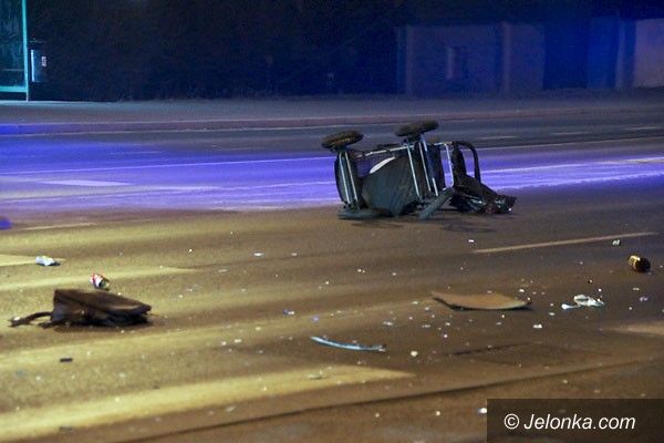 Mężczyzna z wózkiem pod kołami samochodu. Na ulicy Wolności
