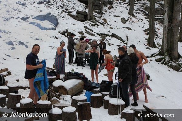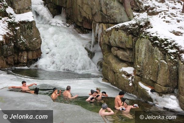 Na 20–lecie przesieckich morsów kąpiel przy Wodospadzie Podgórnej