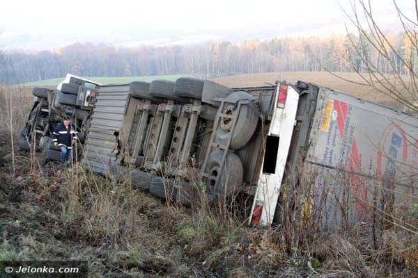 Na drodze z Płoszczynki do Czernicy wywróciła się ciężarówka