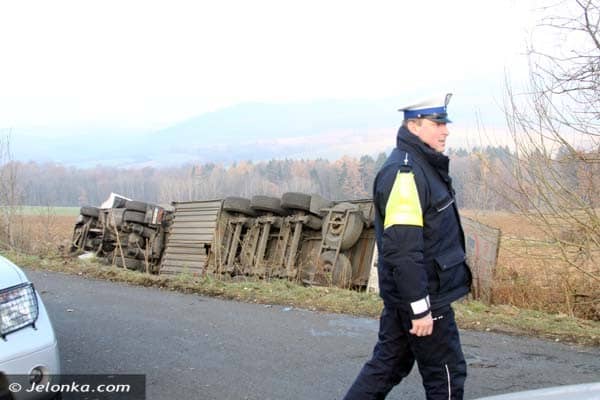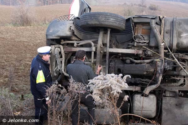 Na drodze z Płoszczynki do Czernicy wywróciła się ciężarówka