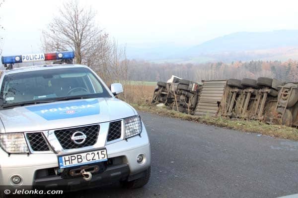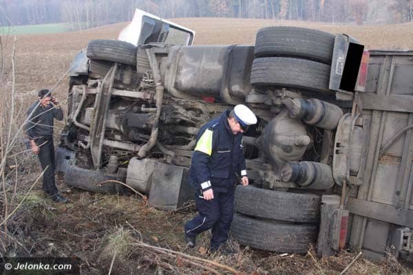 Na drodze z Płoszczynki do Czernicy wywróciła się ciężarówka