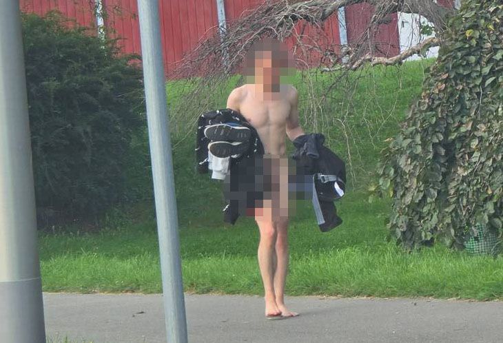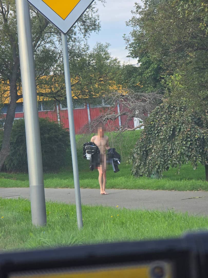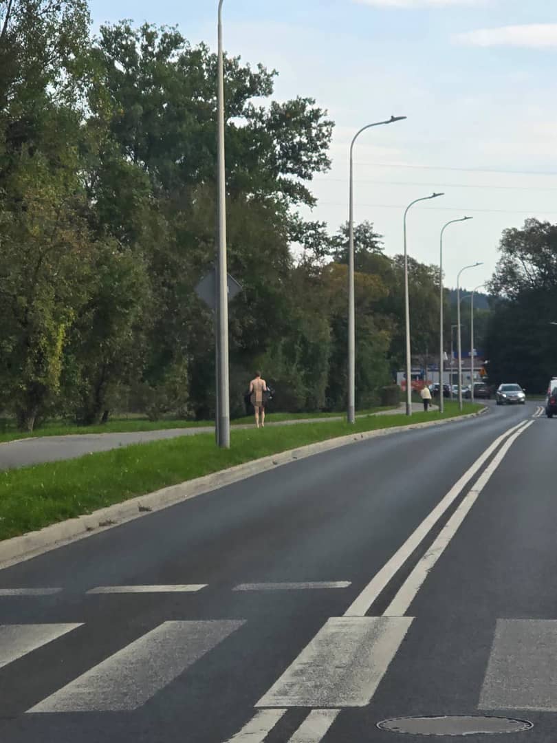 Nago chodnikiem