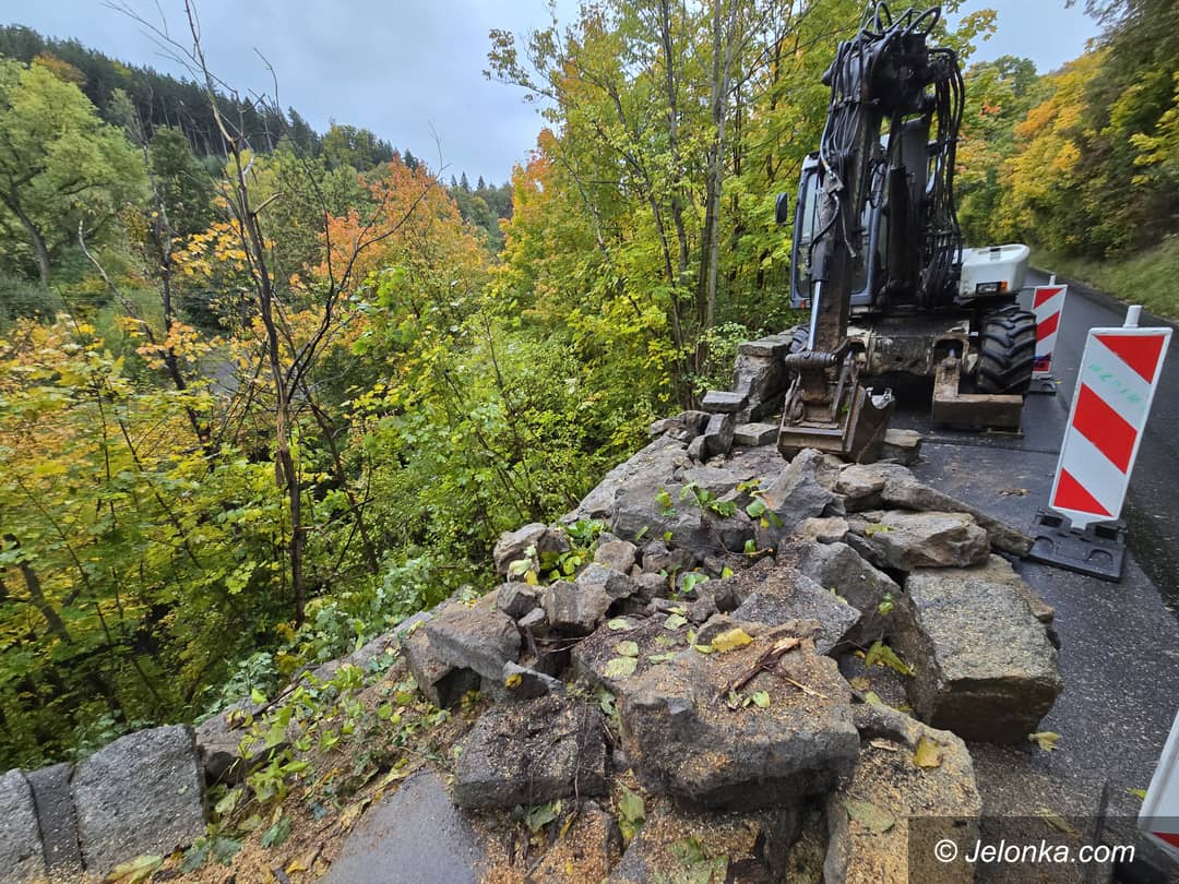 Naprawiają murek przy drodze do Jagniątkowa