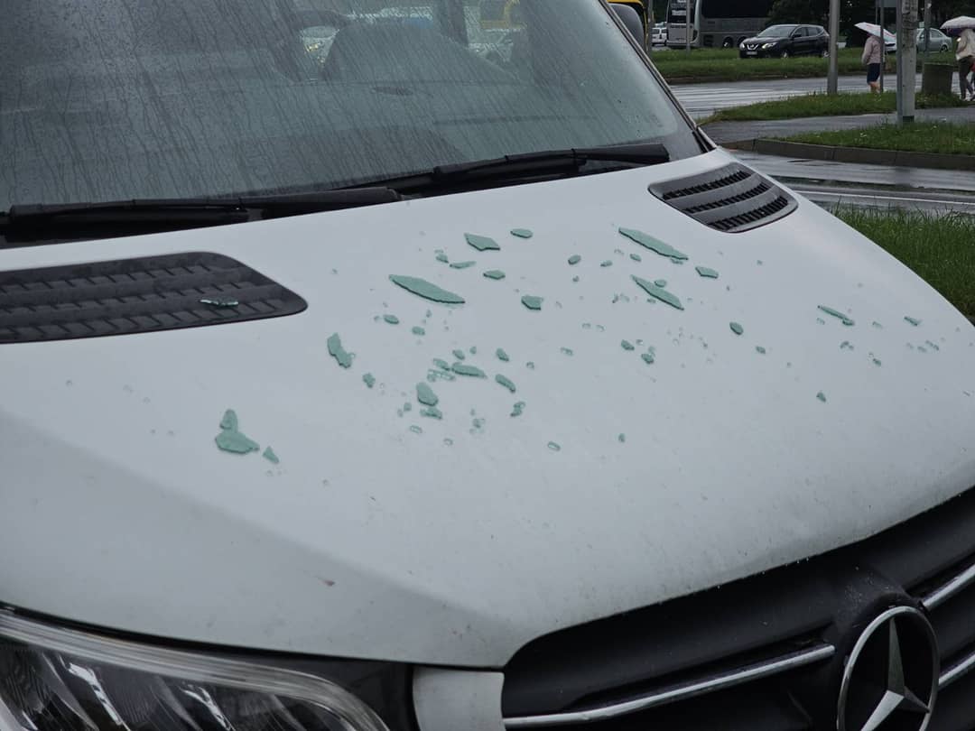 Nie wyhamował i "poszła" szyba w aucie