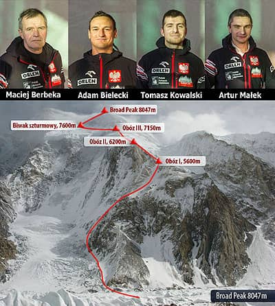 = 13 lat temu polscy himalaiści zapisali się na kartach historii – dokonując pionierskiego, zimowego wejścia na ośmiotysięcznik Broad Peak (8047 m) w Karakorum. Wśród nich był nasz syn, Tomasz. Wspomnienia wracają z całą mocą... Pamiętamy - pisze mama Tomka, Alicja Kowalska.