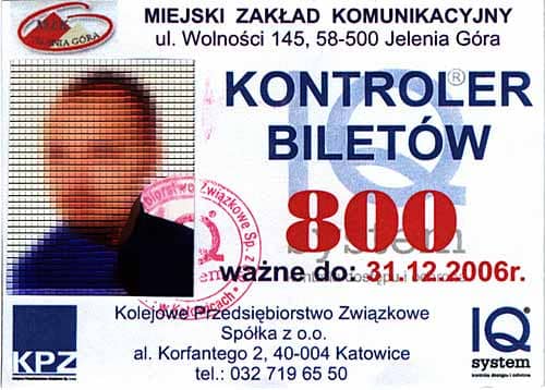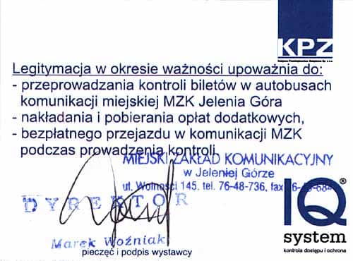 Wzór legitymacji kontrolerów Kolejowego Przedsiębiorstwa Związkowego.