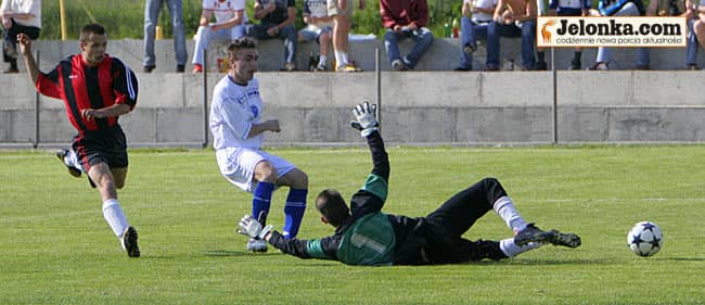 Bramkarz gości aż pięć razy został pokonany przez Jarosława Kondraciuka (Lotnik).