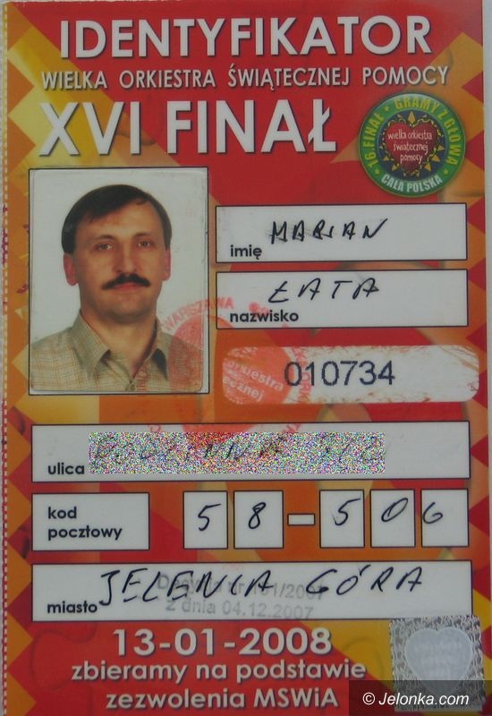 Wzór identyfikatora XVI finału Wielkiej Orkiestry Świątecznej Pomocy.