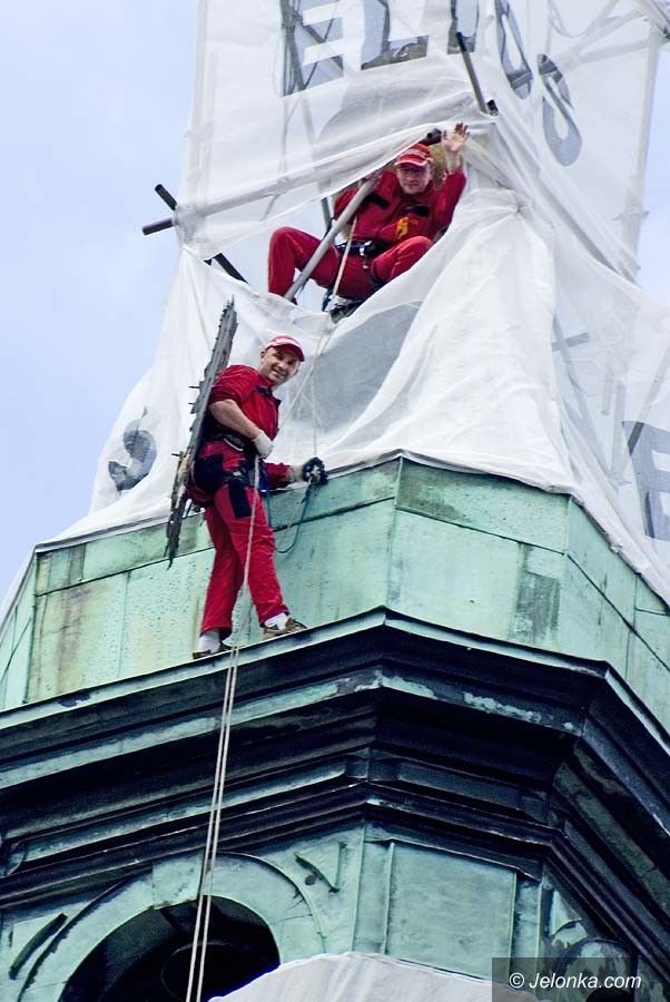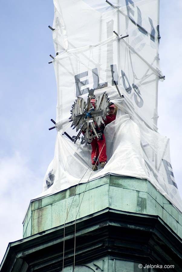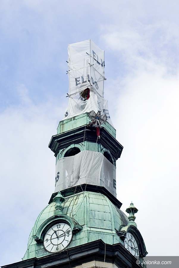 Orzeł „sfrunął” z wieży ratusza