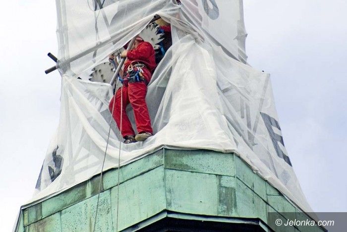 Orzeł „sfrunął” z wieży ratusza