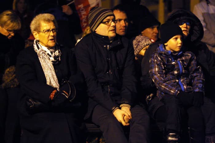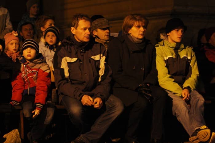 Patriotycznie przy ognisku na dziedzińcu bazyliki