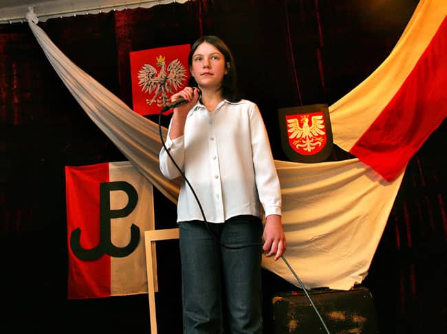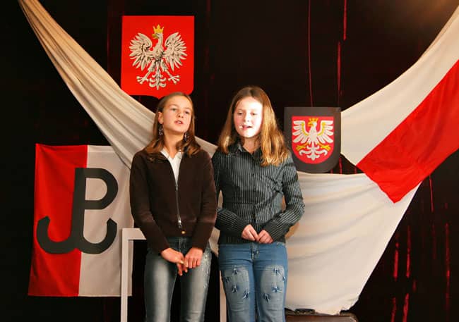 Kasia Pytel i Nikola Degener z grupy wokalnej przy Szkole Podstawowej nr 10 wykonały pieśń „Rozkwitały pąki białych róż”.